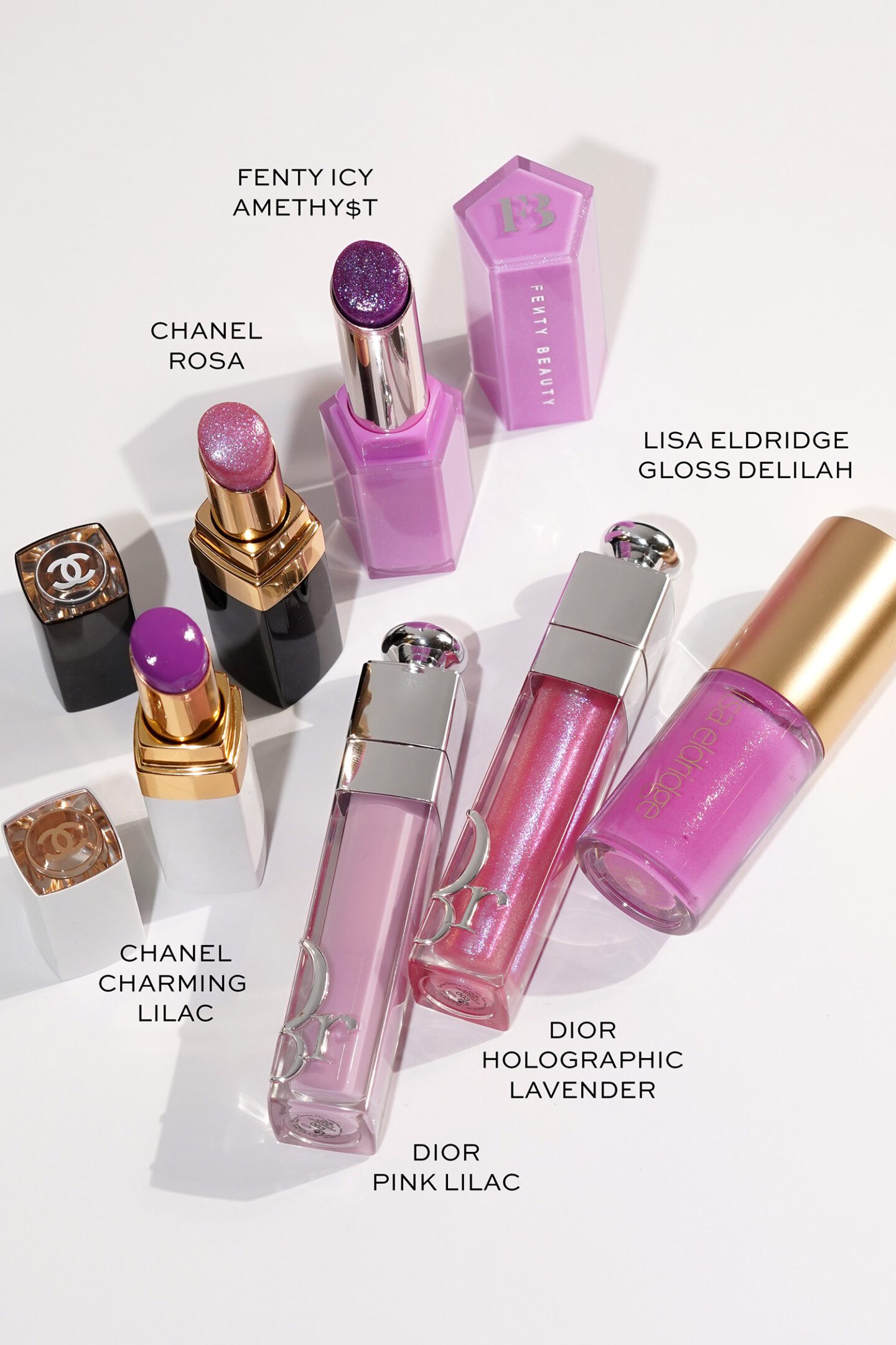 Comparisons to the Fenty Gloss Bomb Stix in Icy Amethy$t (reviewed here), Chanel Rouge Coco Baume Shine in Charming Lilac (review here), Dior Addict Lip Maximizer Gloss in Pink Lilac (swatched here) and Holographic Lavender (review here) and the Lisa Eldridge Gloss in Delilah (discontinued).